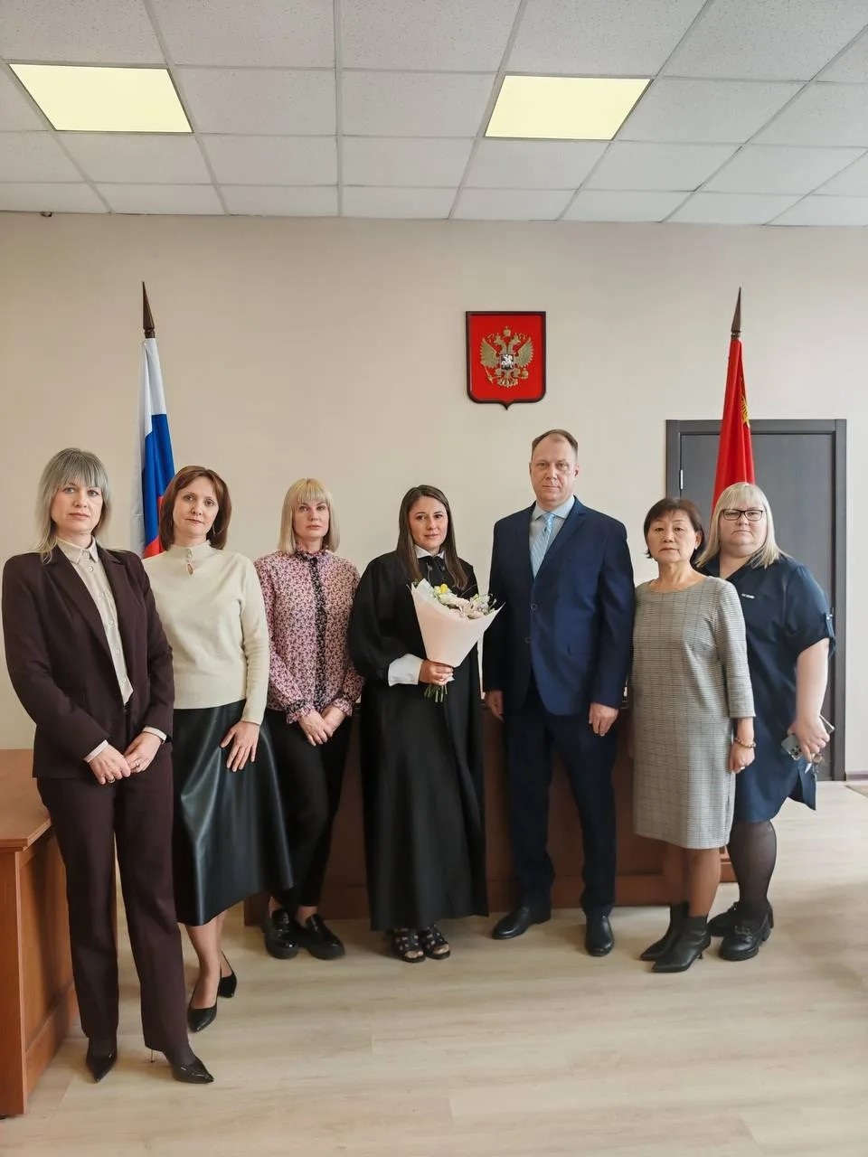 15.04.2026 в торжественной обстановке состоялась церемония принесения присяги впервые назначенным на три года мировым судьей Кан О.Г., которая официально вступила в должность и приступила к осуществлению правосудия на судебном участке № 53 судебного района г. Находка Приморского края. Представляя коллективу мировых судей и аппарату нового мирового судью, председатель Находкинского городского суда Костенко С.А. пожелал Кан О.Г. профессиональных успехов, качественного осуществления правосудия, соблюдения принципов законности, справедливости и судейской этики. Назначение нового судьи позитивно скажется на обеспечение доступности правосудия населению г. Находки и оптимизацию служебной нагрузки мировых судей. ![]() ![]() |
